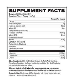 Mix one scoop (10.5g) of Basic BCAA Electrolyte Formula with 250-500ml of cold water. Shake or blend well and consume one serving per day. Perfect for use before, during, or after your workout to support hydration and muscle recovery.