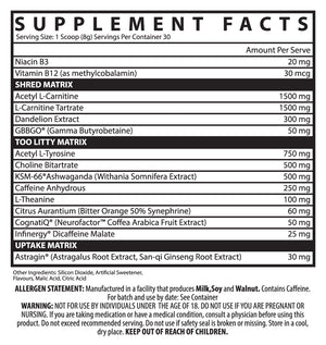 - Enhanced Cognitive Function: Infused with nootropics like Acetyl L-Tyrosine, Choline Bitartrate, and Ashwagandha, Inspired Shred supports a calm mindset, boosts cognitive function, and reduces stress, helping you stay focused on your goals.
