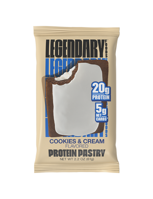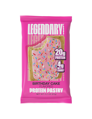 Level up your snack game with Legendary Foods Protein Pastry! These 180-calorie pastries are a guilt-free alternative to traditional protein bars, offering a range of delicious flavours like Chocolate Cake, Cookies & Cream, and Strawberry.
