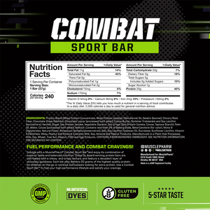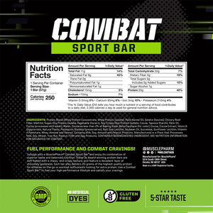 MusclePharm Combat Sport Bars are gluten-free and crafted to meet the rigorous standards of athletes who demand the best. Part of the MusclePharm Sport Series, they are designed to optimise physical performance, enhance recovery, and support overall wellness. Perfect for professional athletes, fitness enthusiasts, or anyone looking for healthy, high-protein snacks.