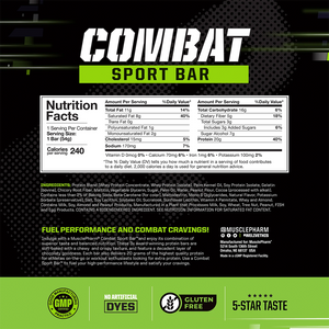 MusclePharm Combat Sport Bars are the perfect protein bars for athletes and fitness enthusiasts seeking a delicious and nutritious way to fuel their bodies. Each soft-baked bar delivers 20 grams of premium protein from whey isolate and concentrate to support muscle recovery and growth.