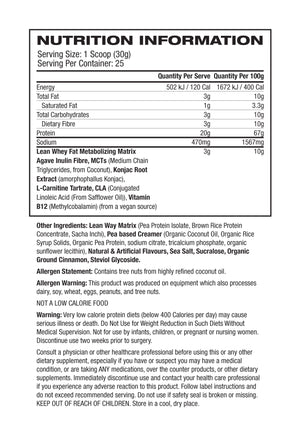 The Lean Way Plant’d separates itself from the competition by utilising a Fat Metabolising Matrix. A Blend of Agave Inulin Fibre, Konjac root, L Carnitine, CLA (conjugated linoleic acid) and MCTs from Coconut, that synergistically work together to assist in optimising your body's fat metabolism. The Lean Way Plant’d is also fortified with Vitamin B-12 to help supplement a daily vegan diet.