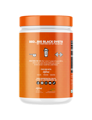 Inspired Big Black DVST8 Pre-Workout (BBD) is an extremely strong Pre-Workout that will help you perform at a whole new level. Inspired Nutraceuticals created BBD to help push you to your limits when exercising.