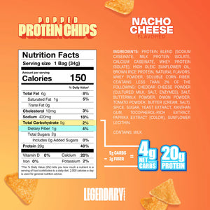 - Bold Flavours & Nutrition: Legendary Foods Popped Protein Chips offer a delicious, crunchy snack with bold flavours like Nacho Cheese, Ranch, and Barbecue.