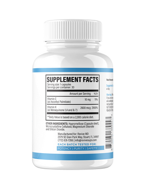 Enhance your bone and heart health with Revive Supplements Vitamin K2. This powerful supplement plays a crucial role in controlling calcium levels within the body. By activating proteins, it promotes the deposition of calcium in bones and teeth, while preventing excess buildup in arteries and soft tissues. Maintain strong bones and a healthy cardiovascular system by incorporating Revive Vitamin K2 into your daily routine.