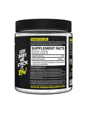Fresh Creatine Monohydrate is part of Fresh’s “Raw Series” — pure, unflavoured single-ingredient formulas for optimal stacking. Creatine Monohydrate is the most researched form of creatine, proven to improve strength, muscle volume, and immediate energy production.