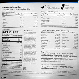 Radix Nutrition Natural Whey Protein is made from Ultra-Filtered Whey Protein Isolate, Ultra-Filtered Whey Protein Concentrate, and Ultra-Filtered Milk Protein Concentrate. Proudly sourced from New Zealand fresh, grass Pastured Milk.