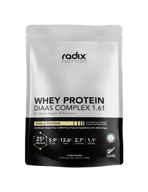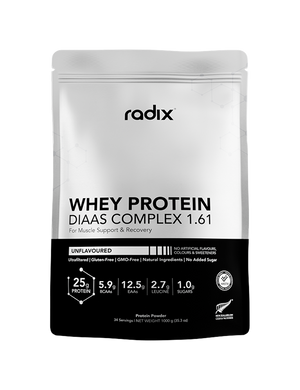 Short for Digestible Indispensable Amino Acid Score. DIAAS provides a more accurate method of measuring a foods amino acid absorption by the body. Using DIAAS, Radix was able to formulate a more effective, bioavailable protein, made from the highest quality ingredients, from sources we trust.