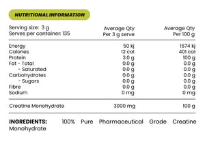 Prepare to elevate your training with our 100% pharmaceutical-grade micronised creatine, formulated to give you the ultimate boost in strength, power, and muscle performance. Here’s what you can expect: