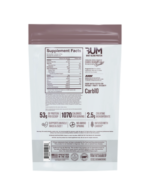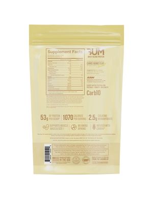 CBUM Mass Gainer is a powerhouse combination of multiple carbohydrate sources like Carb10, Sweet Potato Starch, Oat Flour, and Quinoa Powder. In addition, CBUM Mass Gainer includes a Tri-Source protein blend of Whey Protein Concentrate, Whey Protein Isolate, and Micellar Casein for more time release. CBUM Mass Gainer is also loaded with 2.5 grams of creatine and 2.5 grams of Glutamine for added recovery.