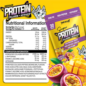 Nexus Super Protein Water (30 Serves) – A light, refreshing collagen-based protein drink with AstraGin® to support absorption, gut health, and daily protein intake without heaviness.
