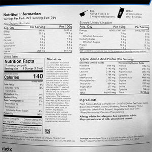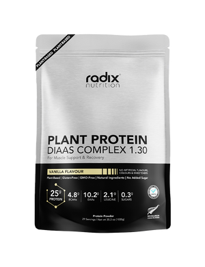 Radix Nutrition Natural Plant Protein was made to provide a complete amino acid profile across all nine essential amino acids. With a digestibility score of DIAAS 1.11. It even outperforms pure Whey Protein Isolate, previously considered to be the “Gold Standard”.