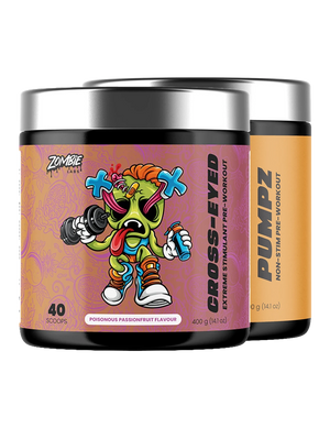 - Zombie Labs PUMPZ Non-Stim Pre-Workout – A powerful non-stim pump formula built to maximise blood flow, muscle fullness, and performance — perfect on its own or stacked with CROSS-EYED.